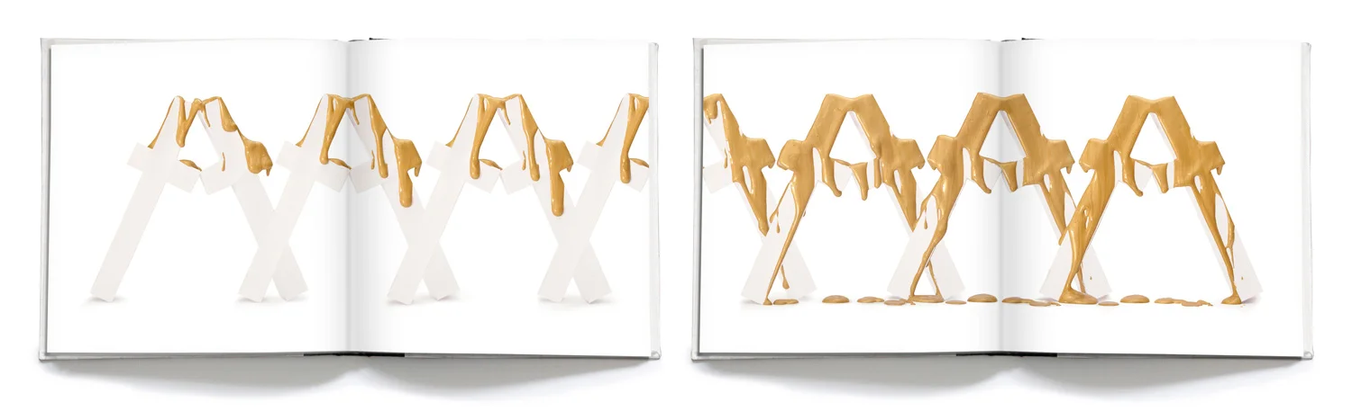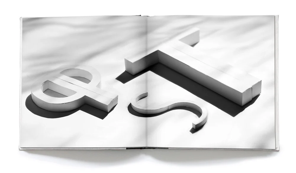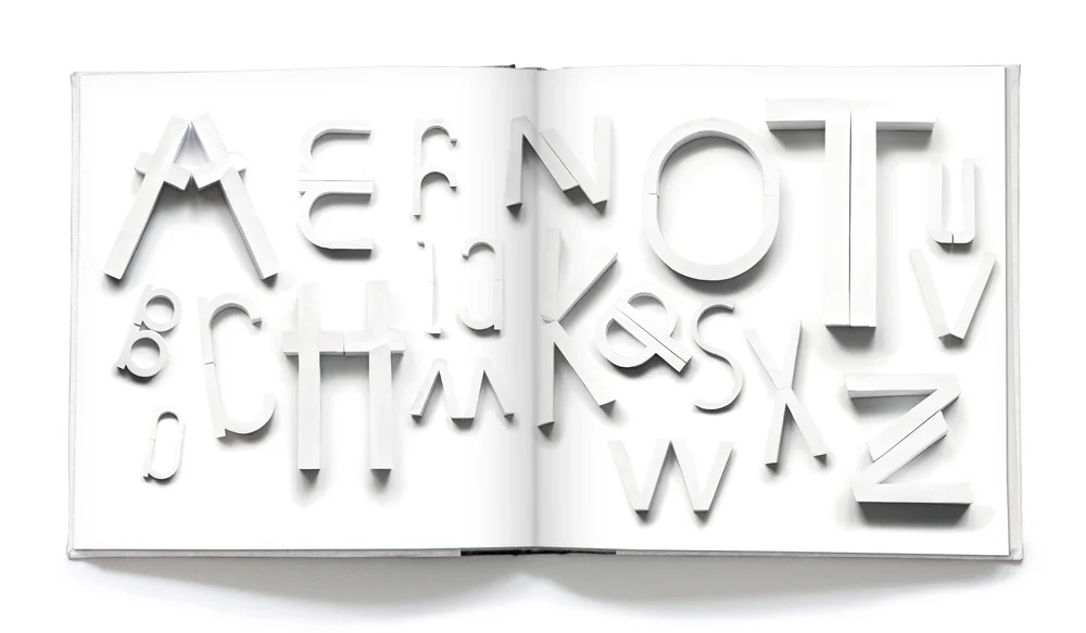 Nachdem ich acht Buchstaben gefunden hatte, mit denen ich fast alle Buchstaben formen konnte, habe ich alle acht Buchstaben in zweifacher Ausführung dreidimensional aus Papier nachgebaut. Die dabei enstandenen Papierbuchstaben sind zum Bestandteil aller Kapitel geworden.